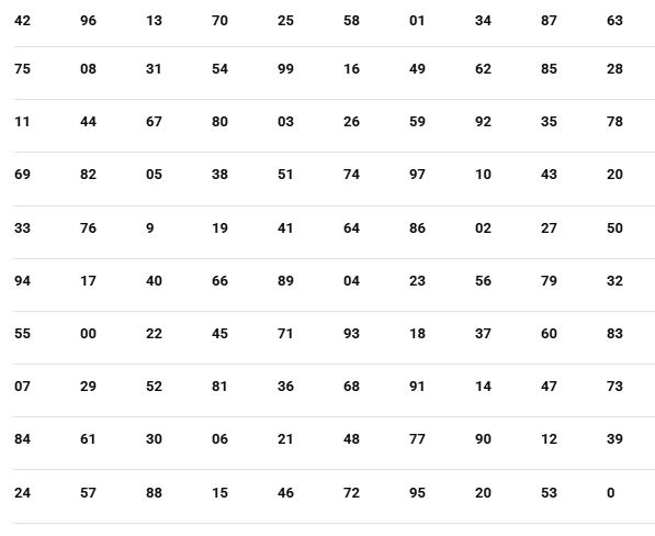 2. Using only your eyes (no finger or pen pointing), find the number 00 in the grid and mark it (mentally or by using a pen if you print it out).